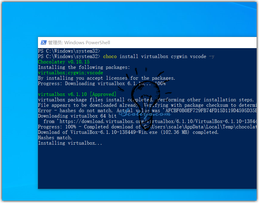 使用choco安装一些常用软件 virtualbox cygwin vscode
