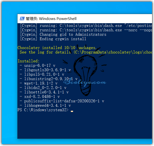choco install bash coreutils gzip unzip wget xxd --source=cygwin -y
